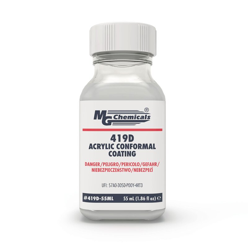 Our 419D Premium Acrylic Conformal Coating is an IPC-CC-830B and UL 94-V0 certified, fast drying, xylene and toluene free product that provides an excellent finish.