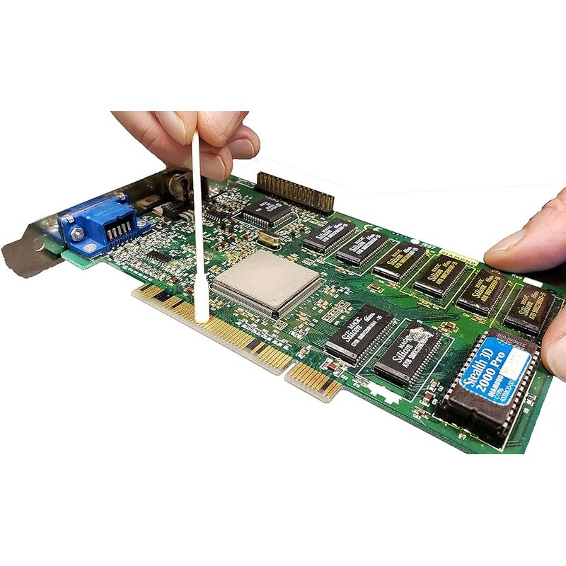 A durable precision cleaning applicator with a shred resistant 100% urethane foam head with 100PPI porosity. Bonded securely to a birch shaft providing extra strength when additional pressure must be applied. Available in packs of 10, 50, 250 and 1000.