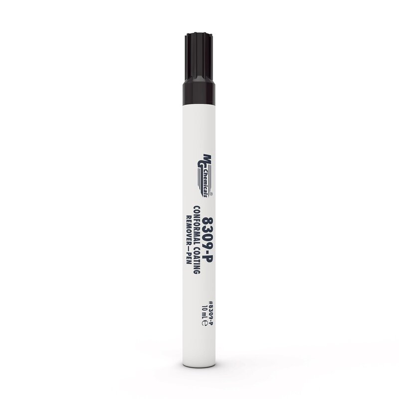 The 8309 Conformal Coating Stripper is available in both liquid and pen format. It removes most reworkable conformal coatings and readily removes thermoplastic (non-cross linked) acrylics, urethanes, and silicones based conformal coatings.