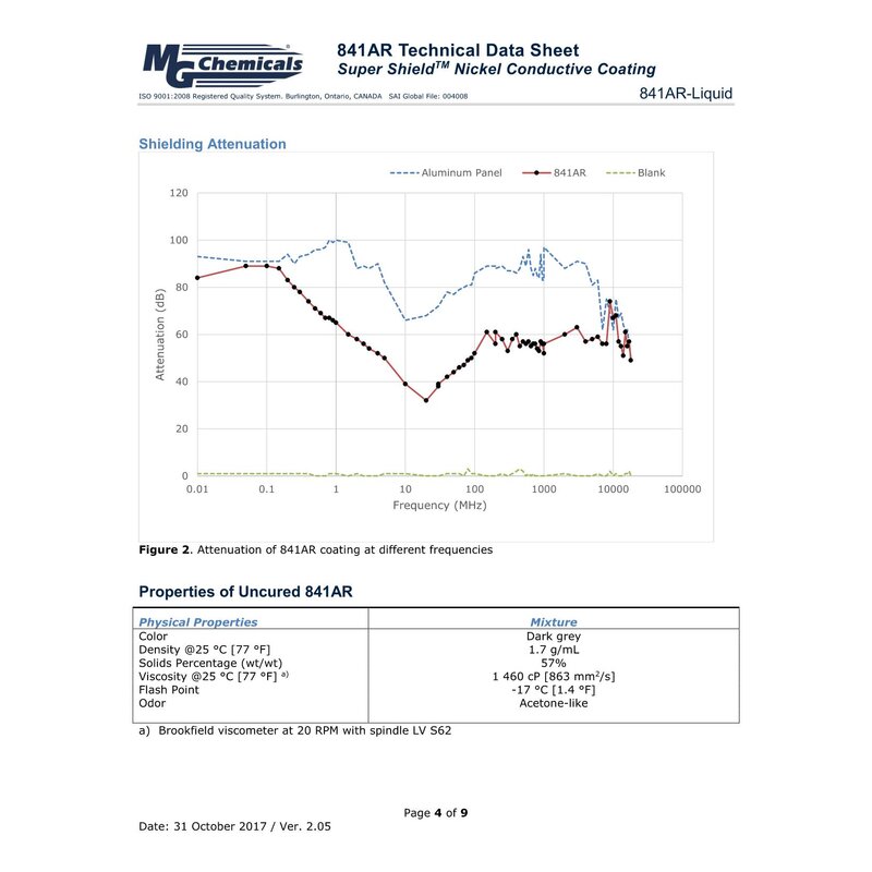 It provides strong adhesion to plastics, excellent conductivity, and strong corrosion resistance, even in marine environments. Applications & Usages The 841AR is designed to provide a conductive coating to the interior of plastic electronic enclosures to suppress EMI/RFI emissions. It excels when corrosion resistance is a concern.