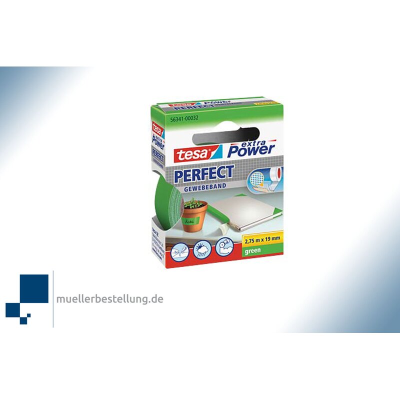 SPTESAGBP-19-2,75-GN TESA extra Power® 56341 Gewebeband Perfect, grün, 19 mm, 2,75 m Das tesa extra Power® Perfect Gewebeband ist der unverzichtbare Helfer für Haushalt und Hobby. Für saubere, perfekte und professionelle Lösungen bei einfachen und schwierigen Reparaturen, Verschönerungen und Instandsetzungen.