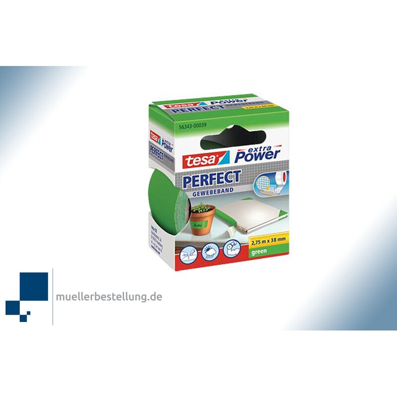 TESA extra Power® 56343 Gewebeband Perfect, grün, 38 mm, 2,75 m