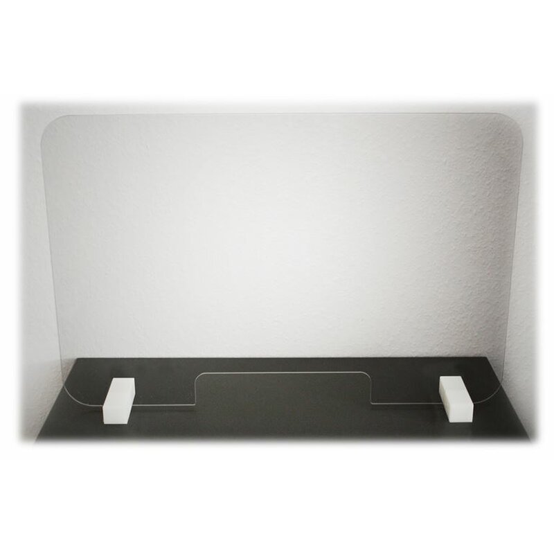 Thekenaufsteller aus Acrylglas können eine gewisse Schutzfunktion bieten. So können diese eine physische Barriere bilden, die bei richtiger Anwendung und Materialverwendung die Ausbreitung von größeren Tröpchen, z.B. durch Husten des Trägers, und/oder eine Kontaktinfektion (z. B. durch Berührung der Mund- und Nasenschleimhaut mit kontaminierten Fingern) reduzieren kann.